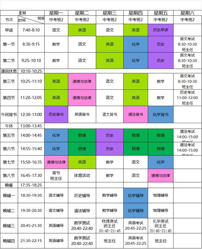 ·早读+午间背书 :清晨与午后黄金记忆期,针对性强化语、英、史、道法等文科核心知识点,筑牢基础不丢分。