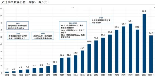 光迅科技深耕光通信领域,通过并购的方式强化自身竞争能力。光迅科技源于1976年成立的邮电部固体器件研究所,2001年改制,2009年登陆深圳证券交易所,成为国内首家上市的通信光电子器件公司。2012年,公司以6.1亿元完成控股股东旗下全资子公司武汉电信器件(WTD)并购。2013年,公司完成丹麦IPX并购,增强在无源光PECVD芯片领域的技术实力。2016年,公司并购法国Almae加强高端有源芯片研发实力(加速在10G及以上速率芯片取得突破)。这一系列发展举措不仅完善了垂直一体化产业布局,更积累了全球化资源整合与技术攻坚能力,为公司持续领跑行业、参与全球高端市场竞争注入发展动能。