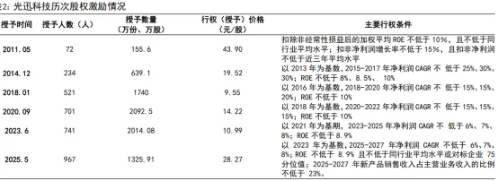 6)2025年5月公司授予第五次股权激励,向967名公司核心管理、业务及技术骨干首次授予1325.91万股限制性股票,占当时总股本的1.67%,授予价格为28.27元/股。