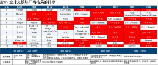 行业地位:光迅科技常年位于全球光模块领军企业。