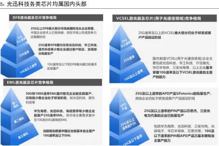 4)固网接入解决方案:公司提供从1G到50G各种速率的BOSA和光收发模块。