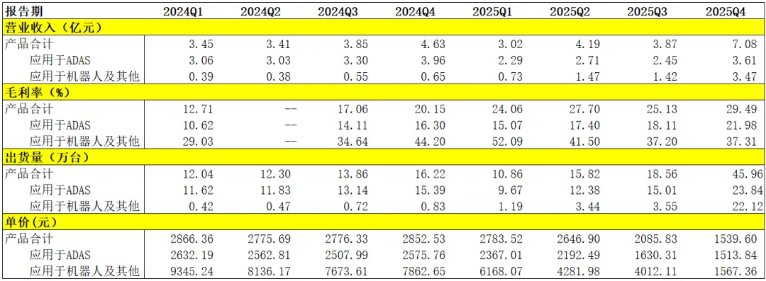 速腾在周三盘后发了年报,没来得及复盘,今天补做个记录。两个要点:Q4经营利润1.3亿元、净利润1.04亿元,首次实现单季度盈利,不过在剔除掉【政府补贴、利息收入、客户赔偿以及公允价值变动带来的其他收益】之后,Q4应该仍然亏损2000万元左右。由于公司之前预告过Q4的销量结构以及能赚6000万元以上,严格意义上其实有点不及我的预期,不过一个公司的困境反转本就不是朝夕之功,仍然看好速腾2026年实现真正的扭亏为盈。Q4没赚到钱的核心原因在于Q4大量出货的机器人激光雷达单价不到1600元(大部分用在割草机器人,而此前一颗4000元以上的产品主要是机械式激光雷达),好消息是车载激光雷达的毛利率继续提升至22%,单价环比也只下降了100来块,机器人激光雷达的毛利率则仍然维持在了37.3%的高位。公司保守预计2026年激光雷达销量同比增长2-3倍,达到180万-270万台。比亚迪45万-55万台、吉利45万-55万台,长城15万-20万台,零跑5万-10万台、小米5万-10万台,合资车企20-25万台。这里面最大的看点是比亚迪,今年比亚迪焕新车型上了兆瓦闪充、天神之眼等技术之后,销量大概率会不错,速腾EM系列受益其中。零跑和小米的量产节点比较晚,2026年估计贡献不了太多,2027年开始放量,但重点是已经切入了它们的供应链,另外还有速腾是否拿下了赛力斯和理想,还有待确认。其中,割草机器人45万-60万台,无人配送/RoboTaxi出货10万-15万台,其他领域出货15万台。
