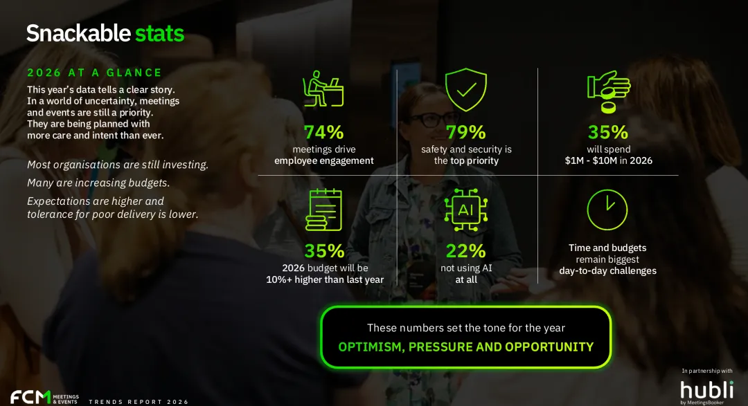 描绘2026年全球会议与活动行业的真实现状,呈现预算走向、优先事项、规模偏好与技术应用的最新格局;