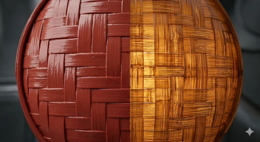 随着虚拟现实与 AI 交互的全面渗透,受众正经历前所未有的“感官赤字”。传统的、基于表面遮盖的工业材质已无法缓解精英阶层对真实物质性的渴求。竹藤作为一种天然生物基材料,其独特的纤维肌理具备天然的亲和力,但传统工艺长期依赖厚涂生漆或化学色浆进行“物理遮盖”,导致了视觉上的“塑料感”与光学死板。