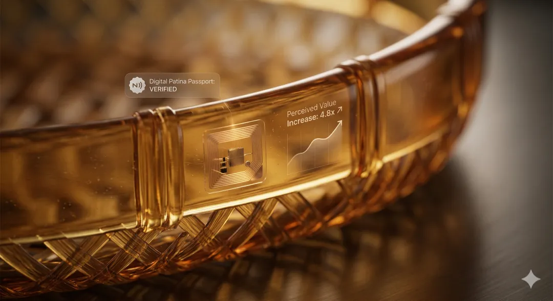 可审计的叙事: 芯片记录了其在真空舱重构的物理参数、碳足迹数据以及工匠的生物识别信息。这使得材质不再是静默的,而是可以被全球顶级拍卖行与收藏机构实时审计的文明资产。