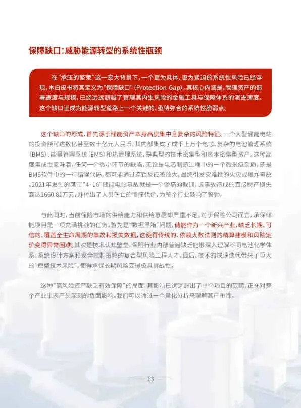 - “保障缺口”: 高风险的储能资产(如中国超2700亿存量资产)大部分游离在有效风险保障之外。原因在于: