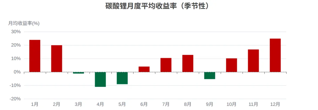 碳酸锂价格的季节性受供需两端双重驱动。供给端,盐湖提锂受高原气候影响显著——每年11月至次年3月为枯水期,盐湖端开工率降至低位;4-5月开始复产,7-9月达到产量高峰。需求端,新能源汽车销售通常呈现"金九银十"旺季特征,9-12月为传统消费旺季。