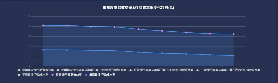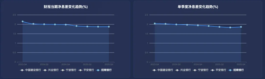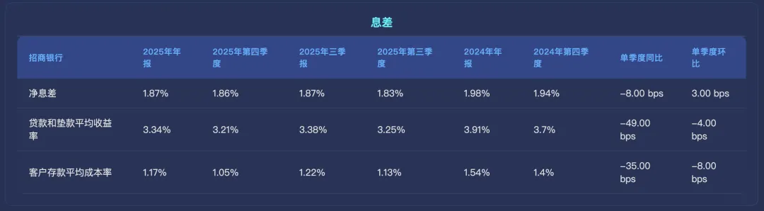 那么究竟净息差会不会开启反转, 就不得不看看贷款收益率和存款成本率的趋势了, 二季度贷款收益率下降了15bps, 三季度下降了13bps, 四季度只下降了4bps, 大有减缓的迹象, 确实在降息周期下维持贷款收益率不容易, 之前在文章中也写到了, 2026年受到外部战争的影响, 导致能源价格上涨, 会导致降息推迟, 其实这是有利于银行维持着净息差的, 甚至如果持续时间较长, 不排除今年加息的可能, 因此今年继续观察招行的净息差数据.