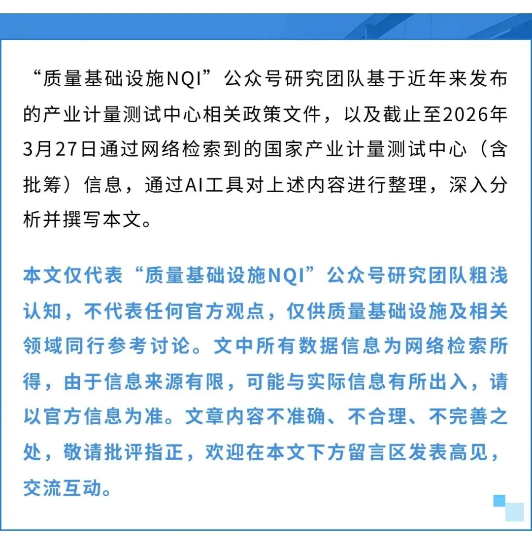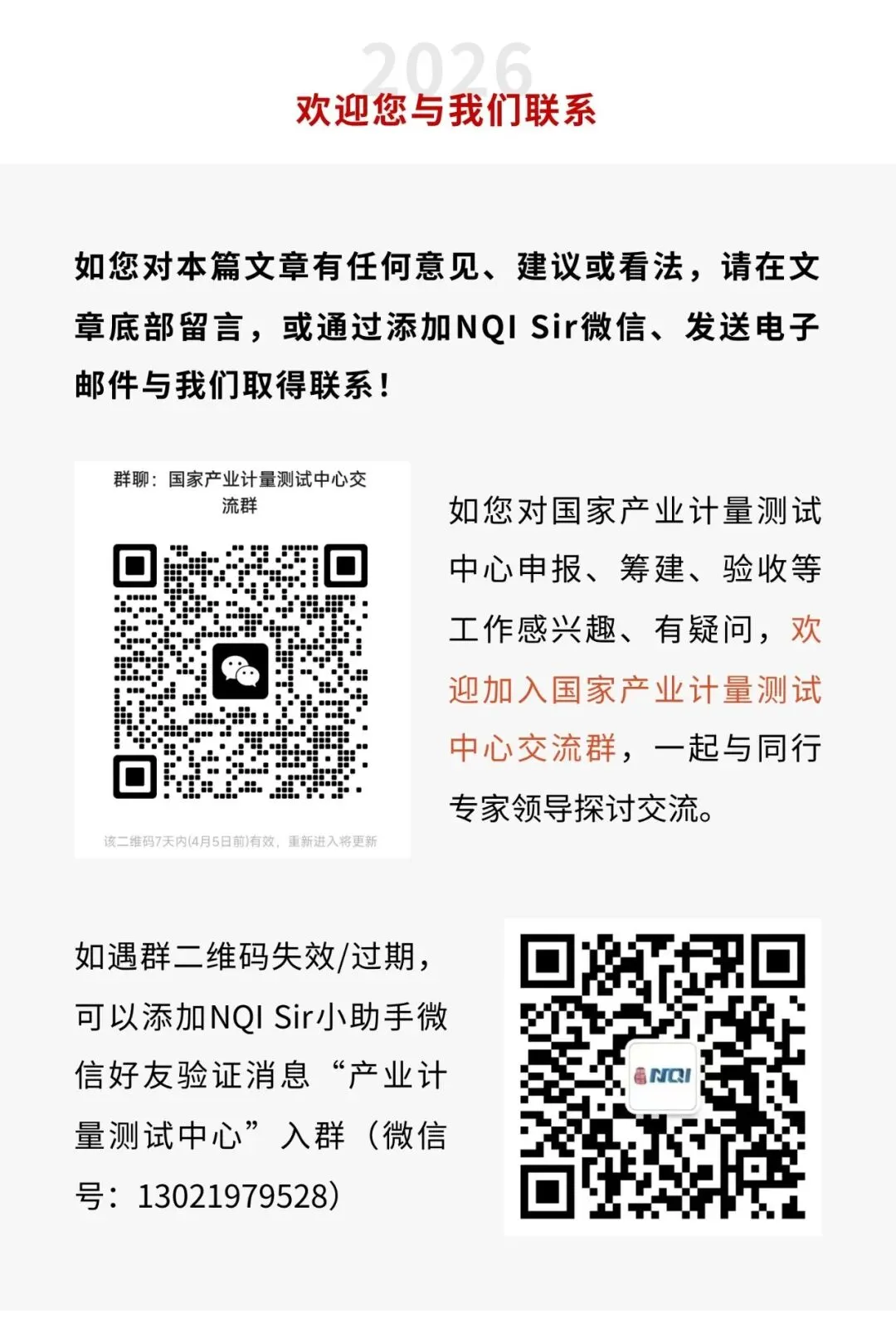 关注质量基础设施NQI公众号,对话框回复“国家产业计量测试中心”,获取国家产业计量测试中心发展研究报告(2026)。
