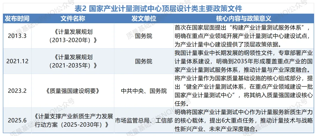 国家产业计量测试中心顶层设计类政策文件主要参见表2。