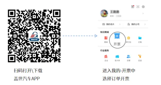 A: 使用下单的手机号登录盖世汽车APP,在APP--我的--开票中选择对应订单,点击【申请开票】按钮,即可自主开票。