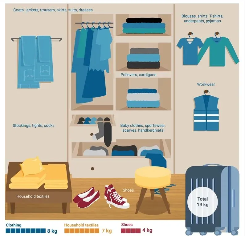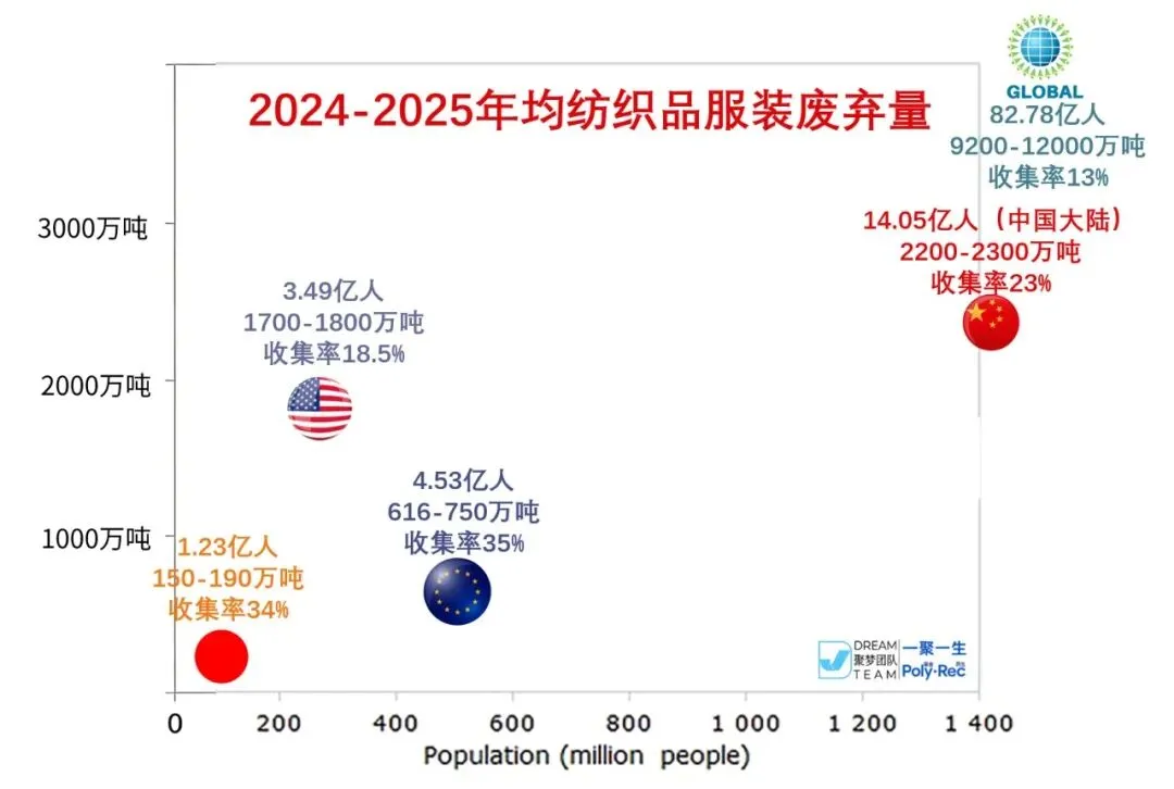 - 全欧洲(约7.4亿人):人均服装+家纺消费量19公斤,对应年度消费量约1400万吨。
