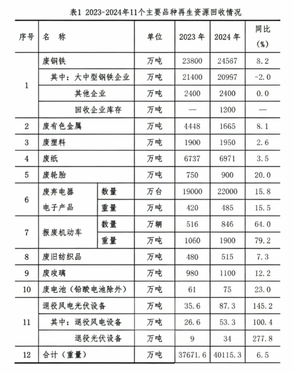 - 中国:回收量515万吨,收集率 23.4%(来源:2025中国再生资源回收行业发展报告)