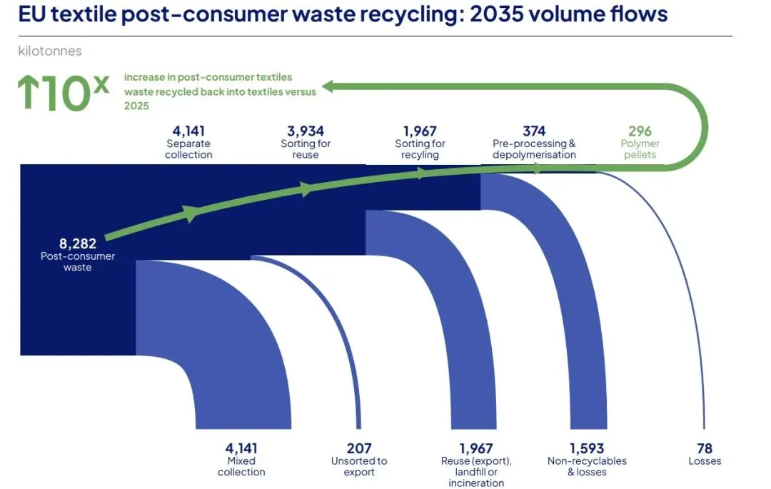推行纺织品单独分类收集,建立EPR生产者责任延伸制度,禁止销毁未售纺织品,设定再生纤维强制含量要求,从源头减少浪费、中端规范回收、末端锁定需求。