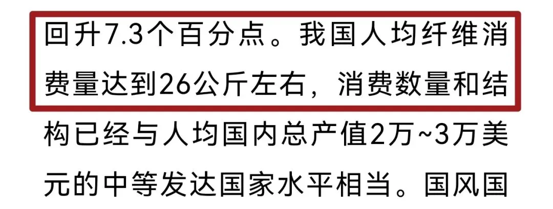 人均纤维消费约26kg,全国年消费纺织品约3600万吨。(高端视点丨孙瑞哲:以新质生产力赋能纺织现代化产业体系建设)