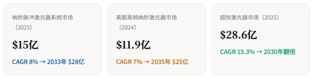 高功率脉冲激光器市场横跨多个细分赛道,不同研究机构统计口径各异,但增长趋势高度一致。