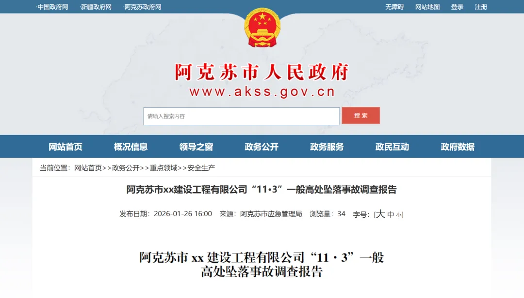 安全警示|阿克苏市xx建设工程有限公司“11·3”一般高处坠落事故调查