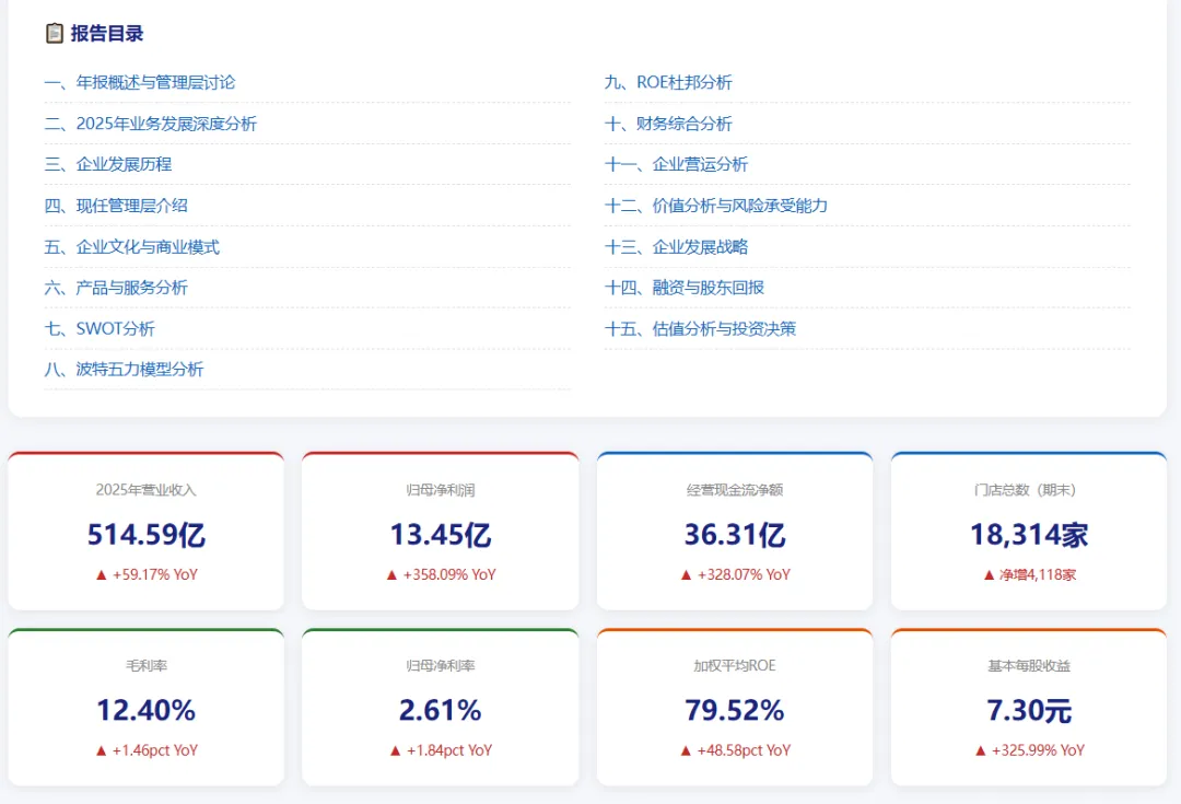 2025年新开4,720家,关店602家,净增4,118家,期末总数18,314家,与市场预期的约1.8万家高度吻合,扩张节奏保持稳健。
