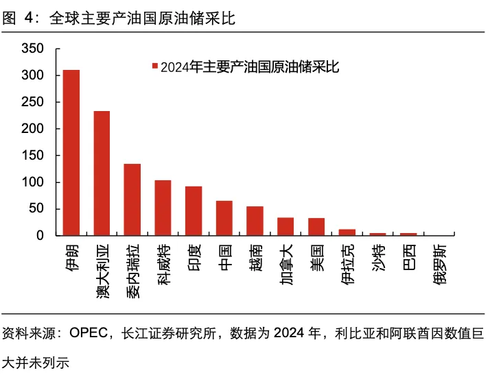 原油储量分布中,OPEC在全球范围内占据主导地位。截至2024年,全球已探明原油储量约1.6万亿桶,其中OPEC成员国与加拿大的储量占比位居前列。从储采比指标来看,OPEC成员国同样具备明显优势。