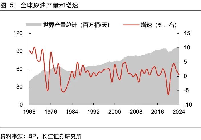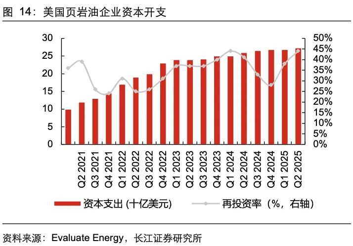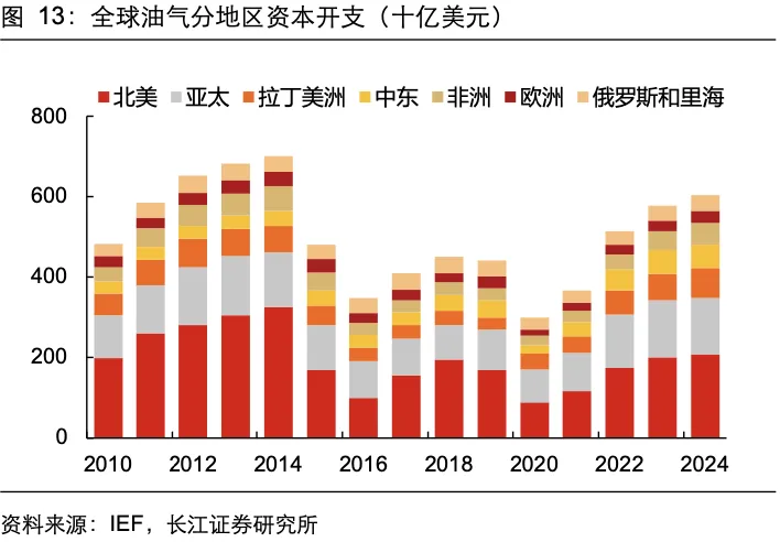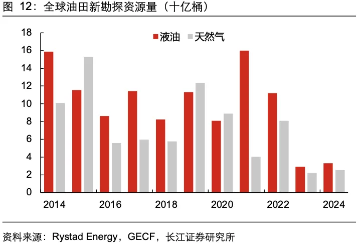 新勘探油田资源略有下滑,但全球油气资本开支持续攀升。一方面,当前全球仍有大规模的原油储量的开采成本低于50美元/桶,即便过去2023年、2024年全球油田新勘探资源出现小幅下降,对整体供给的影响也相对有限。另一方面,自2020年以来,全球油气领域的资本支出呈现持续上升态势。综合来看,原油的潜在长期供给同样不存在紧张局面。