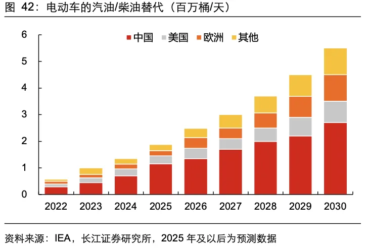 在潜在供给宽松与新能源转型替代的压制下,美伊冲突难改原油中长期“供过于求”的底层格局。总结来看,OPEC+从减产逐步转为增产,叠加全球油气资本开支回升,以及美国页岩油等非OPEC产油国产能的持续释放,预计供给端中长期潜在供给较为宽松;而对于需求端,尽管新兴经济体在短期内仍能提供一定增量,但在全球能源转型加速的大背景下,新能源汽车对传统交通燃油的替代效应日益凸显,长周期原油总需求将不可避免地面临持续回落。