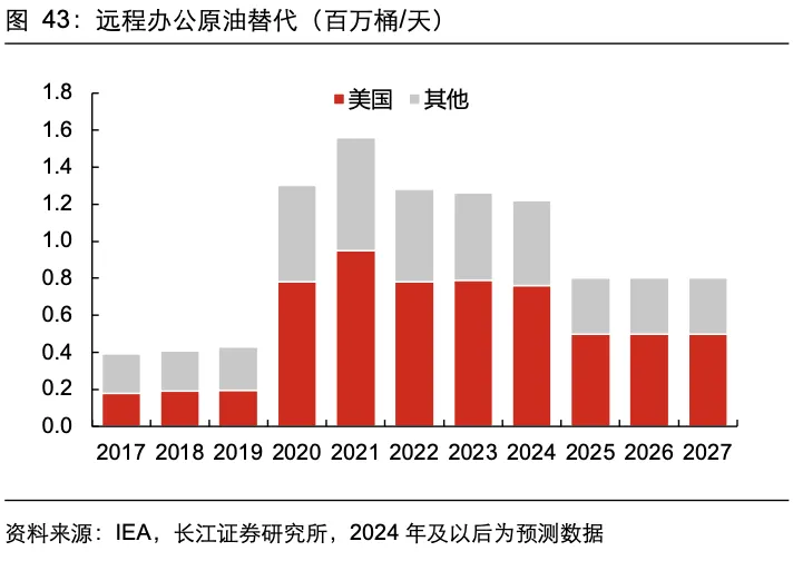 长期来看,展望全球原油消费,短期需求大概率保持稳中有降的态势。从行业结构来看,化工与航空领域的用油需求仍维持较强韧性,但在电动汽车渗透率持续提升、居家办公与视频会议模式普及的背景下,交通运输行业的原油需求将逐步承压下行。