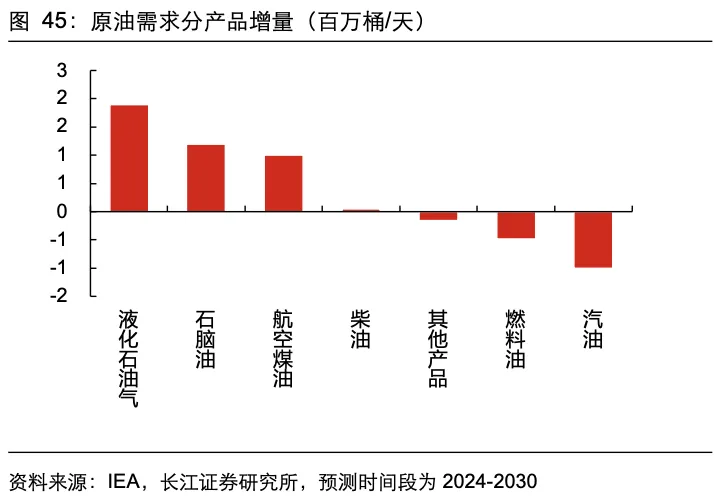 与此同时,石脑油、乙烷和液化石油气作为重要的化工原料,其需求与化工行业发展紧密相关,目前化工用原油的生产与消费已逐步回升,随着炼油化工产能的不断提升,化工领域的用油需求将进一步增加。从长期来看,在各国普遍推行能源转型政策的背景下,化工行业将成为支撑未来原油需求增长的核心力量。