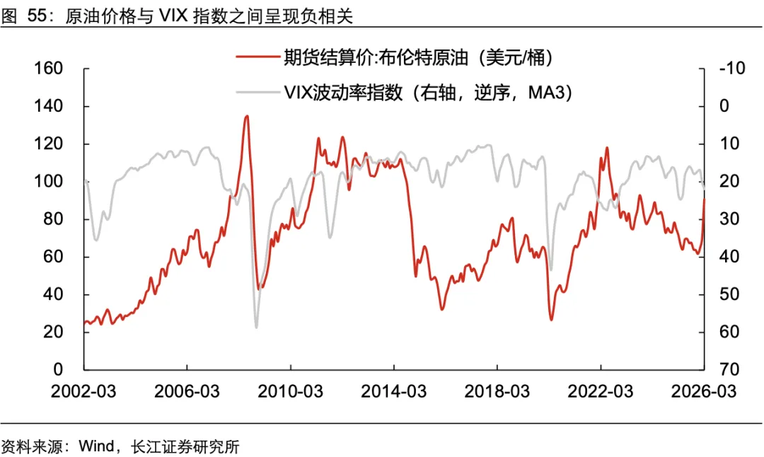 最后,避险因素同样会对原油价格产生一定影响。原油价格与反映市场风险的VIX波动率、经济政策不确定性指数整体呈负相关关系。需要特别注意的是,若风险事件集中在中东产油区等地缘政治敏感区域,市场对原油供给端不稳定的担忧会明显超过需求端影响,油价往往会呈现上涨趋势。
