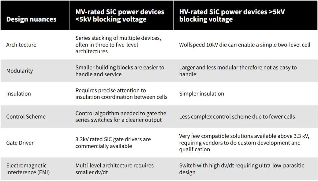 表 1:使用中电压和高电压额定碳化硅器件设计的