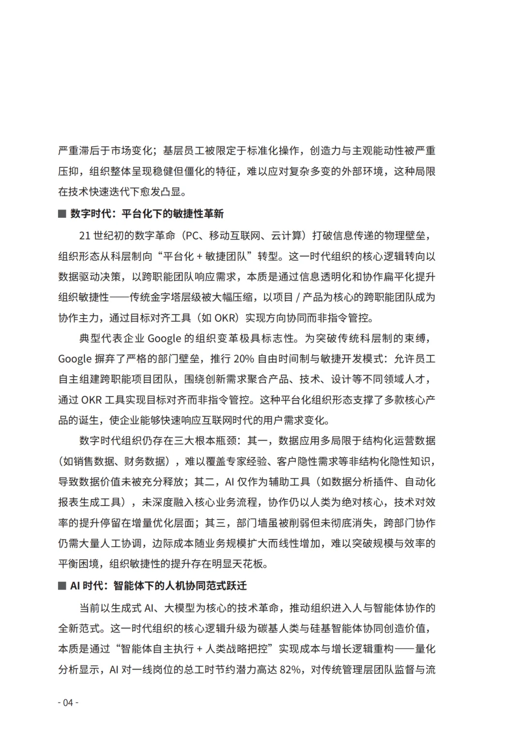 AI 时代的组织竞争本质是人机协同效率的竞争,企业数智化转型不再是技术工具补充,而是价值创造逻辑的根本变革,唯有跳出传统思维框架,以全组织战略共识推进人机协同模式落地,才能在新竞争格局中抢占先机。