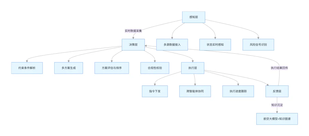 从 “数据驱动” 到 “知识增强的自主决策”:不再依赖人工对数据的解读与规则制定,而是通过大模型沉淀航空领域全量知识,实现复杂场景下的自主、精准决策;
