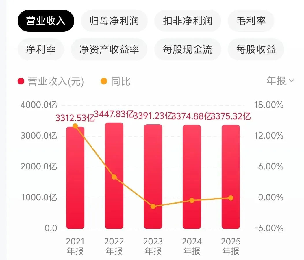 从近五年的营业收入来看,招商银行展现了在复杂经济环境下的经营韧性。从2021年至2025年,营业收入稳定在3300亿元上下,经营基本面趋于稳定。