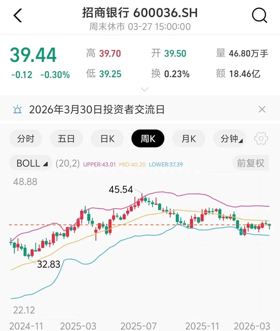 之前提到过2023-2024年我曾在30-27元区间买过一点招商银行,后来在30出头就卖了,那时候不懂银行股特别是招商银行的投资价值。前段时间招商银行回调到37元区间我买了点观察仓,计划是到35元开始大量加仓,但目前短期看来可能机会不大,只能继续耐心等待。