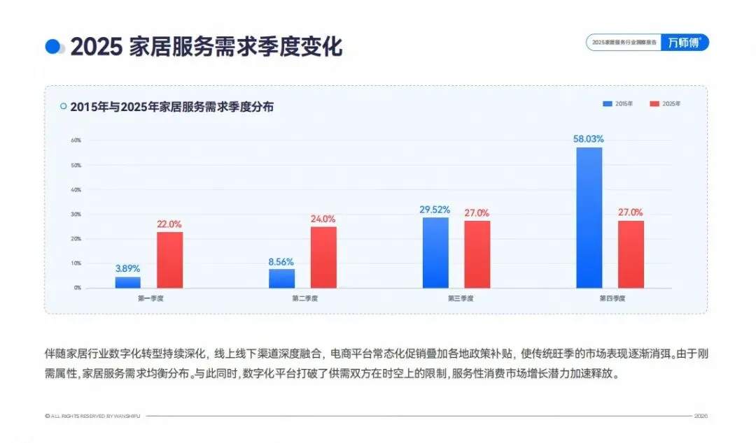 近年来,家居行业数字化转型持续深化,线上线下渠道深度融合,电商平台常态化促销叠加各地政策补贴,传统旺季的市场表现逐渐消弭,家居服务需求均衡分布。