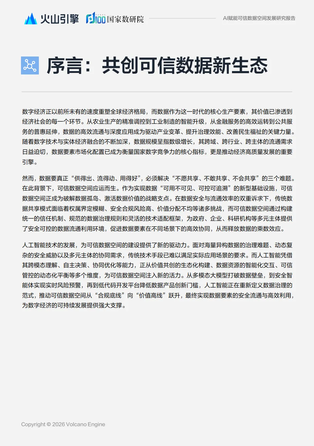 近日,国家数据发展研究院联合火山引擎正式发布《人工智能赋能可信数据空间发展研究报告》。