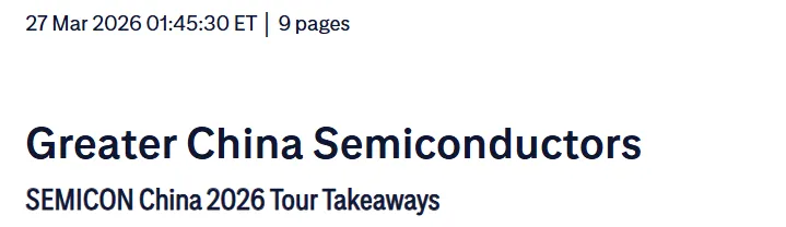 花旗本次参展 2026 中国国际半导体展后发现,大中华区半导体行业正处于国产化提速与行业结构性调整的关键阶段,设备国产化在存储领域突破显著,政策与产业共同推动本土配套率提升;存储短缺成为行业核心变量,既让本土存储厂迎来扩产与上市机遇,也引发了安卓手机出货量下滑、封测厂向先进封装发力的连锁反应;同时功率半导体 / 模拟芯片的涨价潮延续,行业供需格局长期向好,多重趋势交织下,半导体行业的结构性机遇与挑战并存。