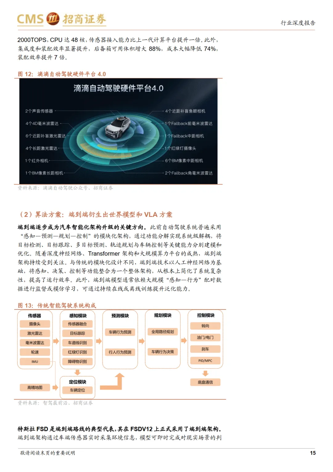 Robotaxi 是 L4 级自动驾驶技术门槛最高、商业模式最清晰、商业价值最大的落地方向,当前已进入规模化运营阶段。国内乘用车 L2 及以上渗透率 2025 年达 66%,L2++ 高阶智驾快速渗透,为 L4 落地奠定基础。政策规划显示,2030 年 L3/L4 乘用车渗透率超 35%,L4 营运车达十万辆级;2035 年渗透率超 70%,L4 营运车达百万辆级。