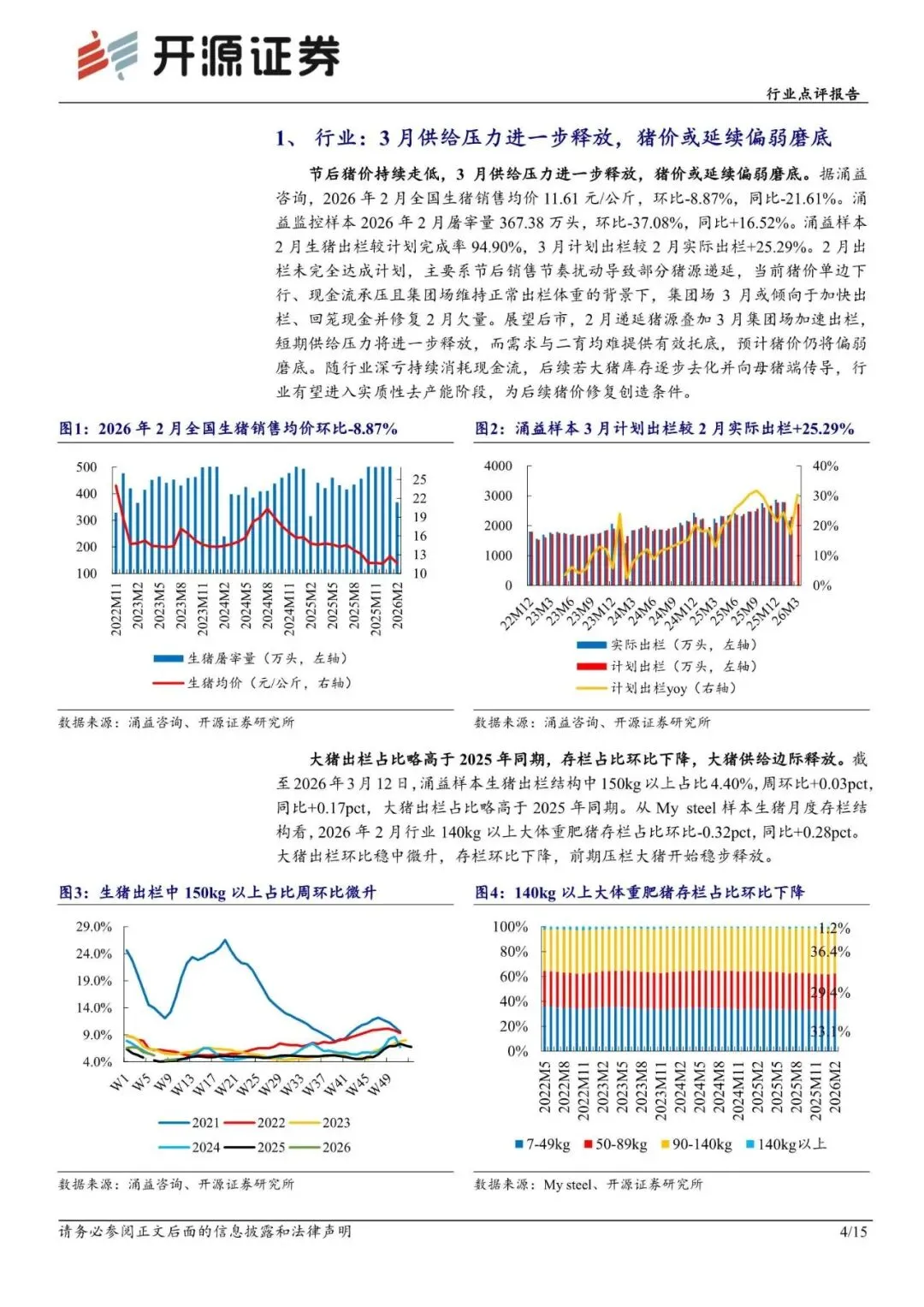 回复暗号:农林牧渔行业点评报告:3月供给压力进一步释放,猪价或延续偏弱磨底-260318-开源证券-15页