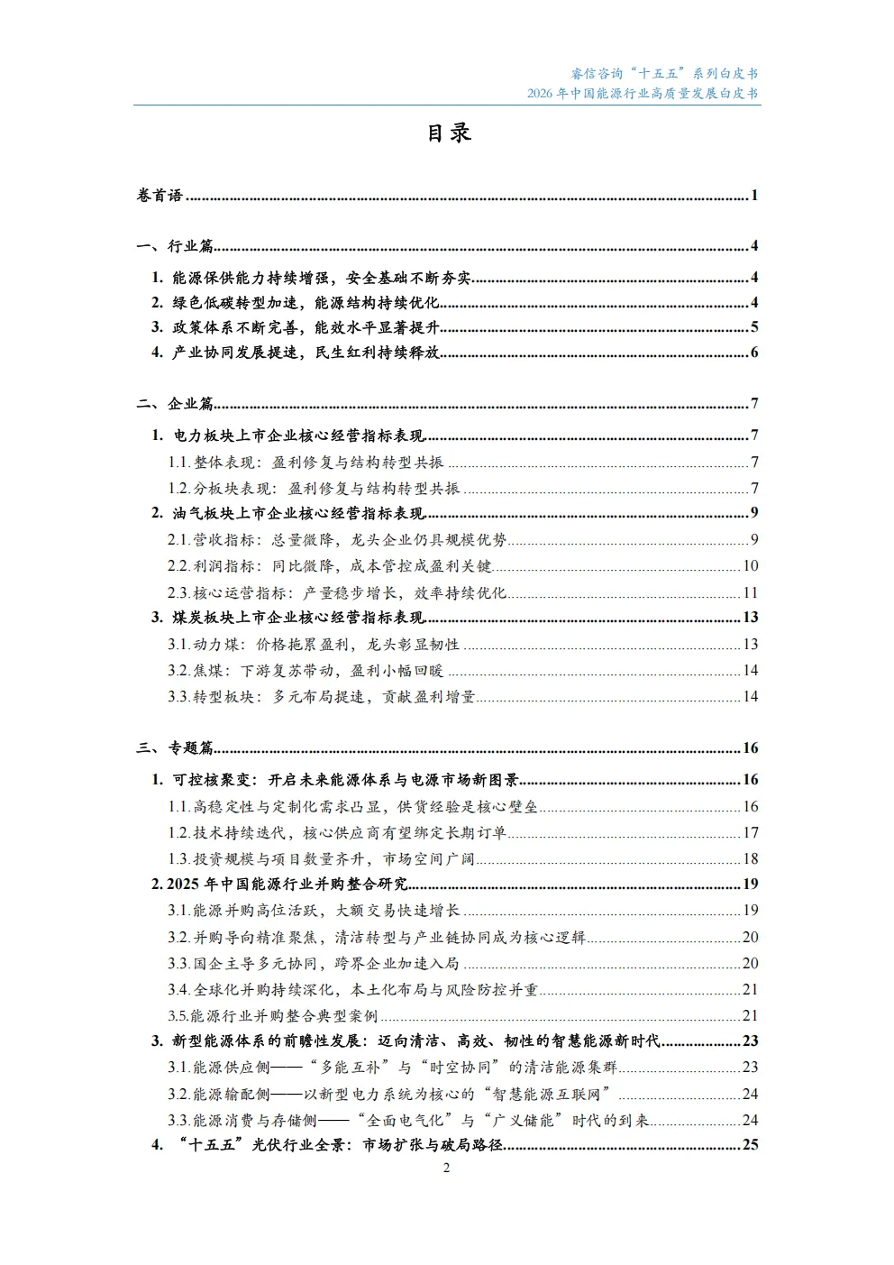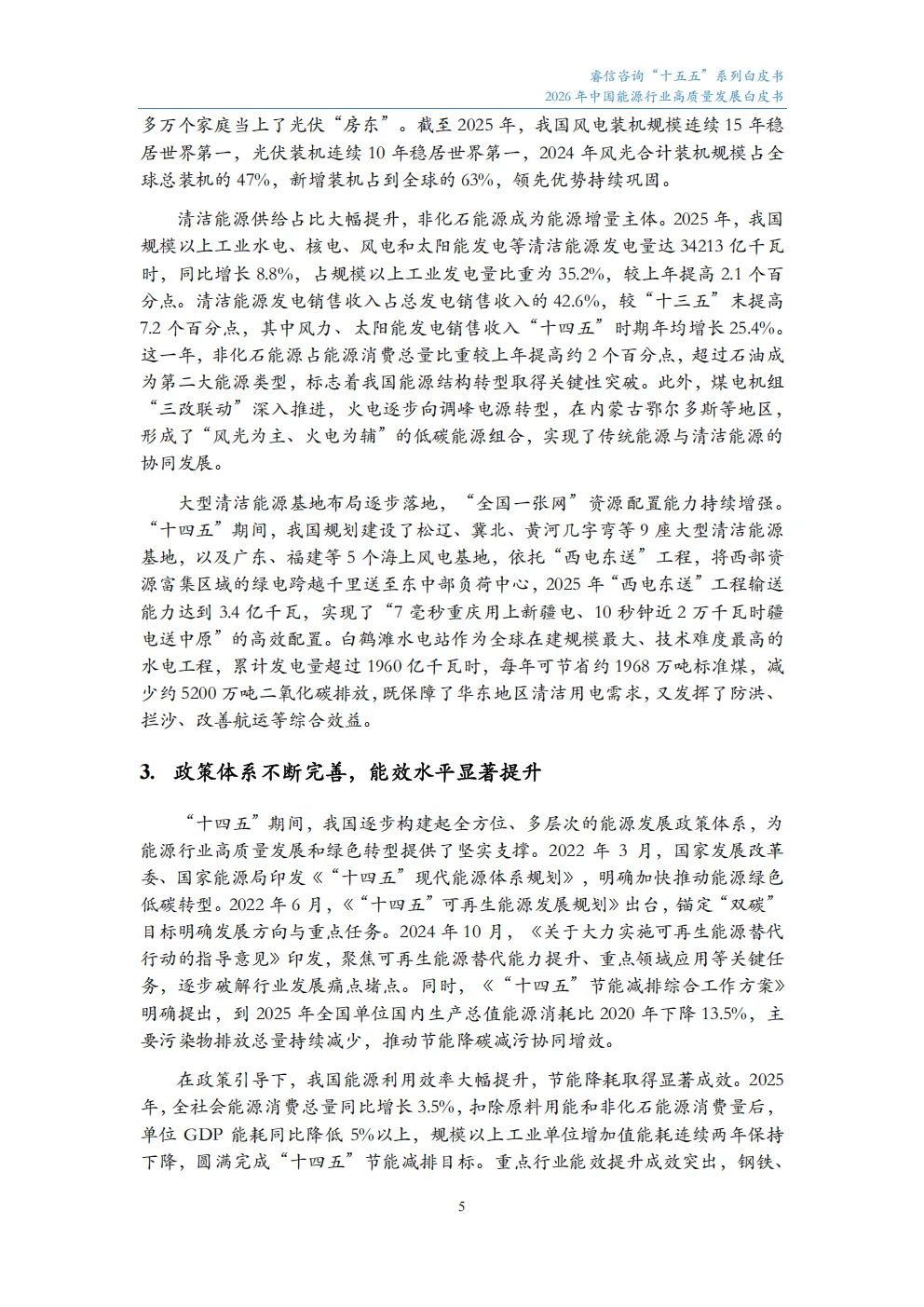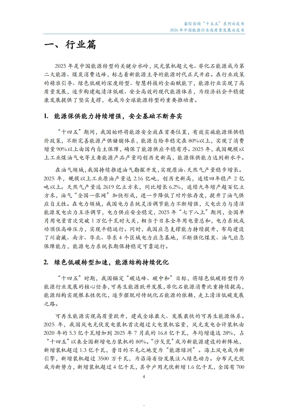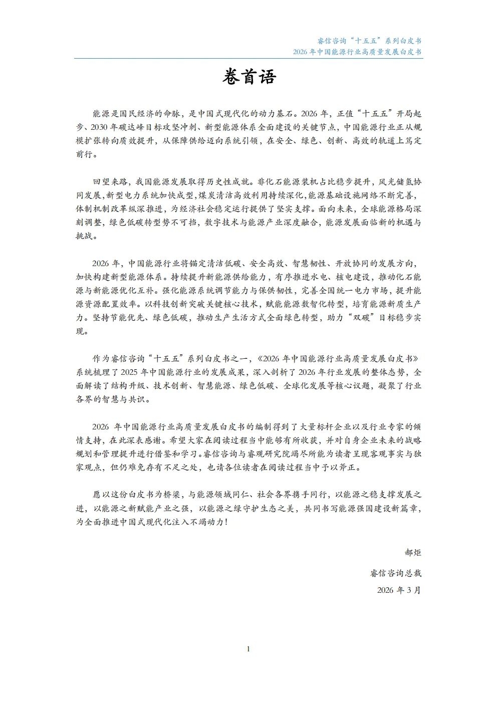 2026 年是 “十五五” 开局、碳达峰攻坚与新型能源体系建设关键期,中国能源行业由规模扩张转向质效提升,围绕安全、绿色、创新、高效主线,全面推进清洁低碳转型与高质量发展。