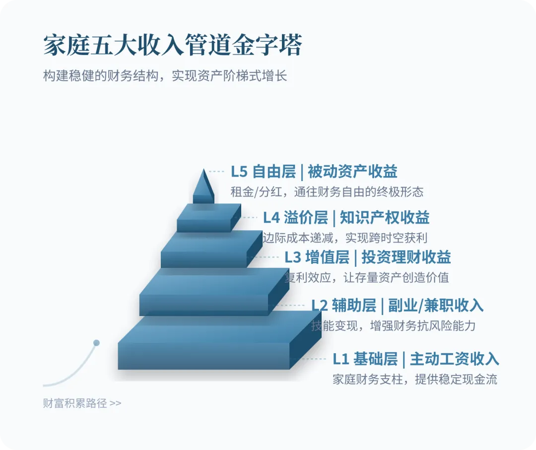 在东方书友会,我们花了2小时共读《家庭财报》,最大的收获,是重新理解了「收入」这件事。我们总以为,赚不到钱是因为不够努力、能力不够,却很少停下来想:你的收入,到底来自哪几个管道?不同人生阶段,该怎么调整你的收入结构?其实赚钱这件事,方向比努力重要太多。书里把家庭收入拆成了清晰的五大管道,你可以现在就拿笔勾一勾,看看自己占了几项:这是绝大多数人的底盘——上班族每个月发的工资是工作收入;创业者不同项目的营业收入,就是主营收入,如果同时做了好几个项目,分开记就好。这是我们安身立命的基础,但如果你的收入100%都来自这里,其实抗风险能力是很弱的:一旦行业变化、公司裁员,你的收入来源立刻就断了。简单说就是「钱生钱」的收入:股权分红、房产租金、银行存款利息、投资收益、甚至保险分红,都算这一类。它对应着我们常说的「财富自由门槛」——当你的理财收入(被动收入)能覆盖掉每月生活支出,你就不用再为了钱工作,真正拿到人生的主动权了。说白了就是「别人给的钱」:父母的财产传承、亲人的赠与,都算这类。不是每个人都能拿到,但它确实是很多人第一桶金的重要来源。这是最容易被我们忽略,但对普通人最友好的一类:比如你参与外部项目拿到的分红、做副业赚的钱,都属于这里。这么梳理下来你会发现,大部分二三十岁的年轻人,可能只有第一项——单一的工资收入。这真的正常吗?书里给了一个特别重要的规律:收入项目的发展,一定是「初期越多越好,后期越集中越好」。刚起步的时候,别把自己框死在一份工资里,要大胆去试不同的收入来源:试试把闲置房子租出去拿租金,试试买一点指数基金拿分红,试试帮朋友推荐靠谱的专家拿合作分成……你得先接触,才知道哪类收入适合自己,哪类资产能给你带来持续回报。等到了你有一定积累之后,再慢慢收缩,把精力和资金集中到你最懂、最能赚钱的核心项目上——贪多嚼不烂,聚焦才能赚到大钱。试错的过程中,最容易掉进去的坑,就是这句话:「反正我投的不多,试试也没关系」。分享一个真实的案例:一位非常成功的60后女企业家,一辈子打拼攒下了不少钱,退休后总有人找她参与新项目,她每次都觉得「投一点而已,不多」,结果前前后后投了十几个项目,累计亏了超过一千万——很多项目是骗局,很多项目她根本不懂,累积下来的试错成本,比一次大额投资亏的还多。不要觉得十万二十万金额小就盲目投,小额投资的累计试错成本,远比你想象的高。把钱放在你真正看懂、方向正确的地方,才能拿到有效回报。六种完全不同的创收方式,我们普通人也可以对照看看:这是最基础的方式:你有专业技能、有工作能力,就靠这个换收入。做设计师靠设计接单,做老师靠讲课赚钱,本质都是这一类,是大多数人的第一块收入底盘。很多人觉得梦想不能当饭吃,但其实梦想刚开始是「负债」——你要投入时间和精力去孵化,但长期来看,它是你持续前进的动力,最终一定会转化成你的资产。就像从小给孩子种上「考北大」的种子,他十几年都会朝着这个方向努力;你心里一直有一个开店的梦想,慢慢攒钱、攒经验,总有一天能做起来。别瞧不起梦想,它是最长期的生产力。就是你有本金,靠投入本金获得收益。但这件事的前提是「认知要匹配」——你不懂的项目,哪怕给你再高的回报承诺,也别碰。你永远赚不到认知以外的钱,靠运气赚的钱,最后一定会凭实力亏掉。就是我们刚才说的转移性收入,长辈给的财产、资产,拿到当然好,没有也不用羡慕,我们自己赚就是了。能抓住趋势和机会的人,总能吃到时代的红利。但这种可遇不可求,你能做的,就是在机会来之前做好准备,别等到机会来了,你却没能力抓住。为什么说这个最适合普通人?因为它完全没本金风险,只考验你的识别能力:你只需要找到3-5个你认可的、匹配你身边人群的专业专家,比如你身边很多女性朋友需要穿搭建议,你认识靠谱的穿搭老师,推荐过去就能拿到合作收入;很多朋友需要做财富规划,你懂的专业顾问,推荐过去也能有收益。它不需要你投钱,不需要你开店,只需要你做好「链接」,赚的就是纯利润,风险极低,普通人完全可以从这里开始,打开你的第二收入管道。我们正处在第五轮康波周期的末尾,2030-2035年就会进入下一轮以人工智能为主导的新周期,下一轮周期的主导国家大概率就是中国。很多人说现在环境不好,赚钱难,选择躺平,但其实对年轻人来说,现在刚好是最好的蓄力期:用3-5年时间,一边攒钱(蓄水),一边提升能力(蓄能),一边积累人脉资源(蓄资源),等到周期起来的时候,你就能稳稳抓住属于你的机会。赚钱不是一辈子的事,找对管道,踩对节奏,你不用每天忙得要死,也能慢慢变富。30-40岁工作阶段一次性提前结清房贷是极其错误决策:- 长期市场利率下行,房贷应该用未来通胀后的收入偿还,不该动用当前储蓄