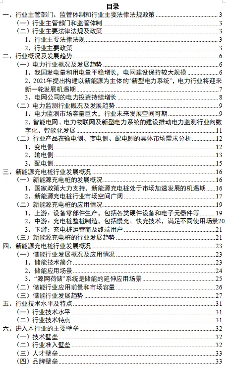 《电力监测行业、新能源充电桩行业、储能行业深度分析报告(政策法规、发展现状、未来趋势、竞争格局)》原文WORD版:请回复“报告225”免费下载。