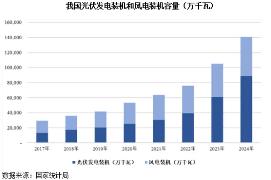 根据国家能源局公布的数据,2022年全国风电、光伏发电新增装机突破1.25亿千瓦,再创历史新高;2024年全国可再生能源新增装机3.73亿千瓦,占全国新增发电装机的86.00%;截至2024年末,可再生能源(含风电、太阳能发电、生物质发电、常规水电、抽出储能等)装机达18.89亿千瓦,占全国发电总装机的56.00%。