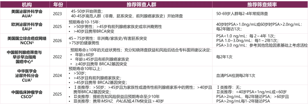 表1. 国内外权威指南均推荐进行PSA检测