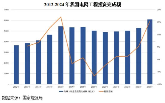 改革开放以来,我国电力建设主要集中在发电环节的建设,电网端建设相对滞后。近年来,为解决我国电力建设不均衡的问题,国家电力投资结构发生了转变,即以特高压为代表的输电通道建设兴起,建设重点从发电环节转移到电网端,电网建设投资规模逐步超过电源建设投资规模,日益增加的电网建设推动了电力系统相关智能产品的稳步增长。2012-2024年,我国电网投资金额不断提升,每年电网投资金额由3,693亿元增长至6,083亿元。在国家不断增加电网建设投资以及社会用电需求不断增加的双重驱动因素下,我国电力系统相关智能产品需求将持续增长。