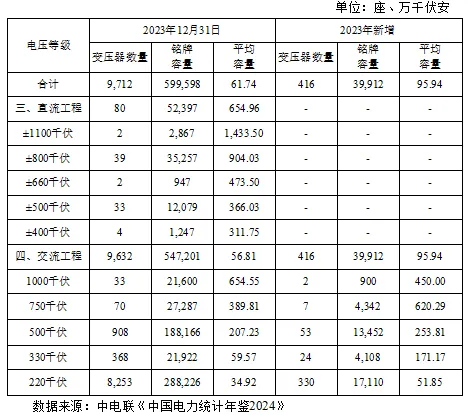 220kV及以上的变电设备容量与新建变电站直接挂钩,出于用电安全的角度考虑,新增变电站均存在加装监测设备并联网的需求,从而为电力监测行业带来更大的市场容量;以2023年为例,新增220kV及以上变电设备容量39,912万千伏安,对应新增变压器416座,通常情况下,一个变电站安装两台性能数据相似的变压器,则理论上需新建208座变电站。2023年度220kV及以上存量及新增变压器座数、铭牌容量、单座变压器平均容量情况如下: