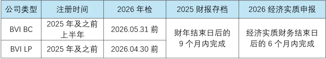 1.上半年成立BVI公司年检:2026年5月31日前完成,建议4月份启动筹备;