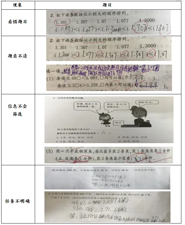 平时教学中,我们经常发现这样的现象:学生做题时抄错题目中的数字;看错运算符号;题意没弄清楚或者题目没读完就草草答题;题目有多余信息或者多个信息解决多个问题时不会选择合适的信息解决问题;还有的问题很简单,学生一看就知道该如何解答,却还常常犯同样的错误。我们通常会把这些错误的原因归咎于学生太马虎、粗心。因此,我们在做作业之前都会跟学生说“细心点”,但学生依旧粗心。我们来看以下案例: