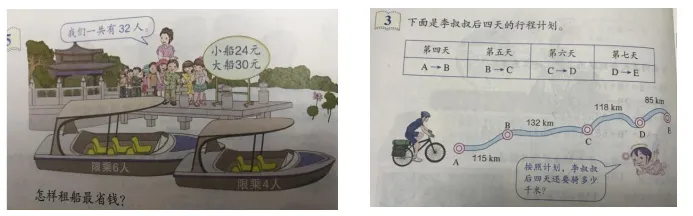 为以多种形式(如表格、图形、漫画、对话、文字、情境图等)提供信息、呈现问题,这些信息的呈现方式是接近生活本来面貌的、杂乱无章的,且经常是多余或不足的,需要学生重新组织,也需要学生对信息进行选择、判断、补充和加工。(如下图)