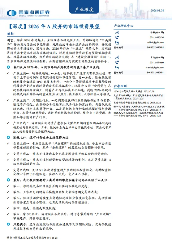 国泰海通证券-产业深度:【深度】2026年A股并购市场投资展望.pdf
