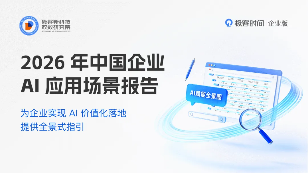为破解 AI 落地困局,分享可复用的实践经验,极客邦科技梳理分析近千份 AI 实践的成功案例并发布《2026 年中国企业 AI 应用场景报告》。《报告》涵盖金融、零售、能源、制造等多个重点行业,拆解千份成功案例背后的底层逻辑,为企业 AI 从 “规模化验证” 迈向 “价值化落地” 提供全景式指引。